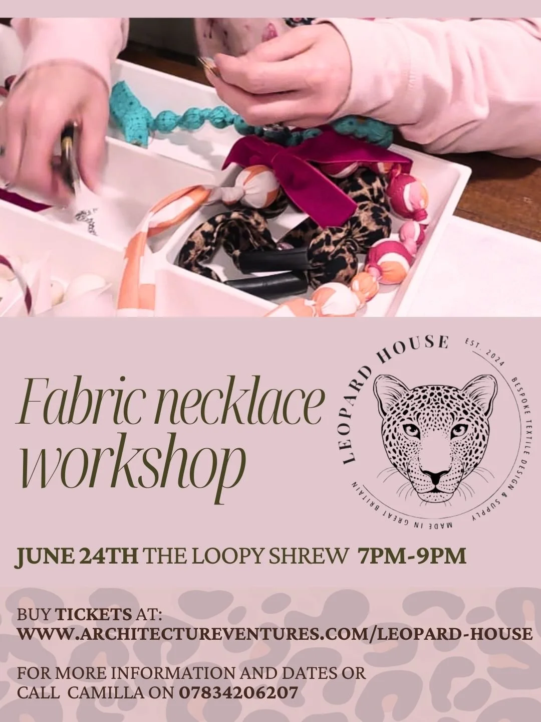 Leopard House Interiors presents a hands-on fabric necklace workshop. Learn, create, and design a bespoke fabric necklace to take home.