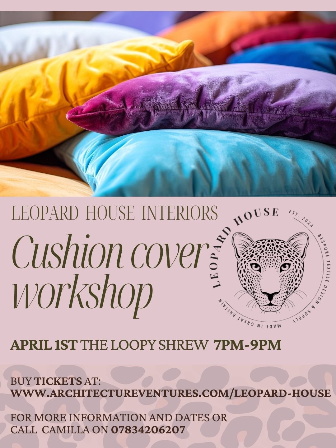 Leopard House Interiors is delighted to present a hands-on Cushion Cover Making Workshop, perfect for anyone looking to create a beautiful, bespoke accessory for their home. During the workshop, you will make one fixed cushion cover in a standard size, with tickets priced at £35.00. Participants are required to bring their own fabric, which must be machine washable; please ensure your fabric is washed beforehand. All tuition, along with some materials and trims, will be provided at no extra cost. Sewing machines will be available to use, though you are very welcome to bring your own if you prefer. Tea and coffee will be available throughout the session for you to enjoy as you create.