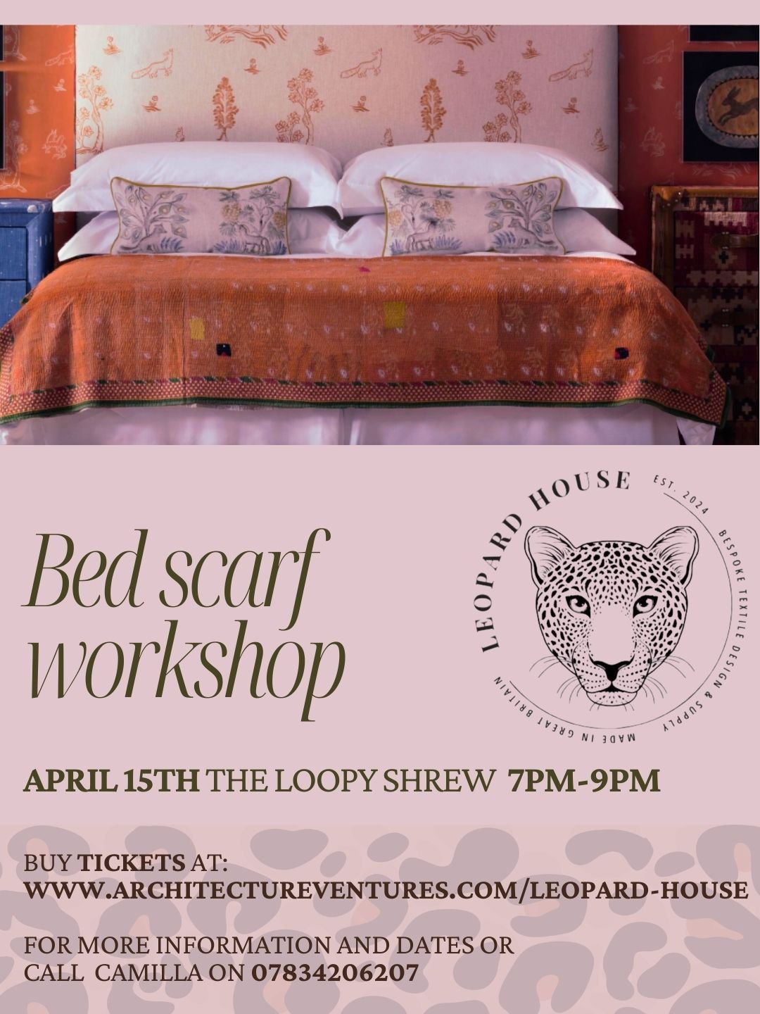 Leopard House Interiors presents a hands-on Bed Scarf workshop. Learn, create, and design a bespoke bed scarf to take home.